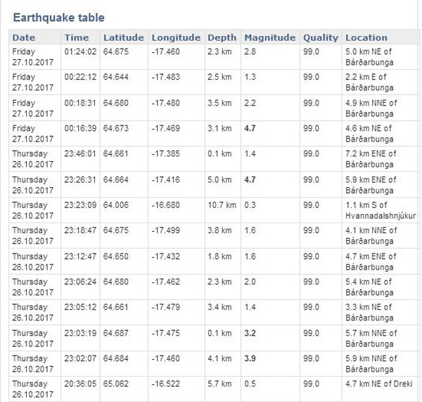 27 October (9:00): The Earth is still trembling this morning in Central Italy. Since 19:10 last night (when the M 5.4 earthquake occurred), more than 200 events have been recorded, including 40 with magnitudes between M 3 and M 4, two with magnitudes between M 4 and M 5, and two events greater than M 5. Since August 24th, 2016, there have been over 18,000 events in an area of over 60 km which extends along the Apennines. 290 earthquakes had magnitudes between M 4 and M 5 and 4 had a magnitude of M 5.
