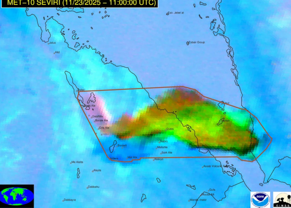 There is no local monitoring system of the Hayli Gubbi volcano. As I often say, we know better Mars than our own planet. The Environment Authority (EA) of the Sultanate of Oman is closely monitoring the developments of the eruption with a view to public health and air quality in the various governorates of the Sultanate. The Authority, through 68 monitoring stations distributed across the governorates of the Sultanate, is continuously monitoring pollutant concentrations around the clock. It also confirms that no increases in pollutant concentrations have been recorded so far within the Sultanate, and there are no indications that air quality has been affected by the volcanic emissions.