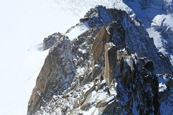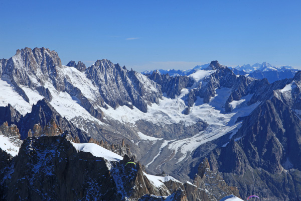 Au mois d’août 2024, au moins quatre éboulements ont été filmés au niveau de la célèbre Aiguille du Midi, dont le téléphérique permet chaque jour à plus de 3 000 touristes de monter à 3 842 m d’altitude. J’ai emprunté le téléphérique en septembre 2018, alors qu’un effondrement s’était produit quelques semaines auparavant sur l’Arête des Cosmiques. Comme beaucoup, je me suis inquiété de l’avenir du téléphérique. Ludovic Ravanel, géomorphologue au CNRS, m’a rassuré et m’a fait remarquer que le site d’implantation des pylônes qui soutiennent les câbles n’était pas, au moins pour un temps, impacté par le réchauffement climatique. Les soubassements sont sous haute surveillance et équipés de capteurs qui alerteraient à la moindre anomalie. Ludovic Ravanel explique que la zone sous l’Aiguille du Midi est relativement active. Elle est aussi très visible, donc il est normal d’avoir beaucoup d’informations sur ce secteur. Sur la partie médiane, la roche est très fracturée, et se situe dans une tranche altitudinale qui est favorable au dégel du permafrost. Ce dernier se dégrade et les étés sont de plus en plus secs et chauds, donc il y a un retrait des masses de glace qui maintiennent la roche. La construction du téléphérique de l’Aiguille du Midi date des années 1950. C’était une bonne idée d’un point de vue de la sécurité car au sommet la température du permafrost est très basse et l’ensemble est stable.
