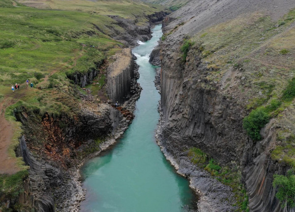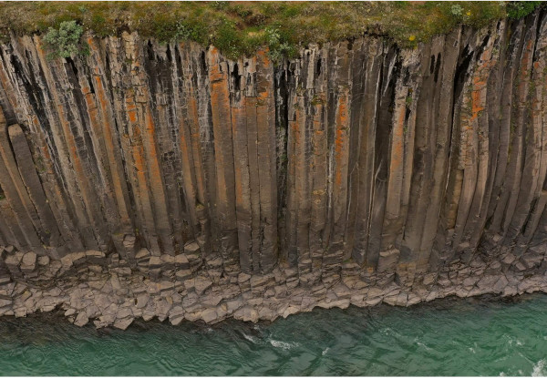 Finally, a third area comprises a series of volcanoes located in the Llémena and Adri River valleys. While there have been several phases of eruptions in the modern era, they can all be dated to around the middle of the Quaternary period (see below). The volcanic cones are of the Strombolian type, sometimes with a central crater (Santa Margarida), others with a lateral crater (Garrinada). They are composed of scoria or large materials (Croscat). There are also lava tables, exposed by fluvial erosion, such as at Castellfollit de la Roca or Sant Joan les Fonts, where the internal structure consolidated into elongated prisms can be seen. (see photos above)