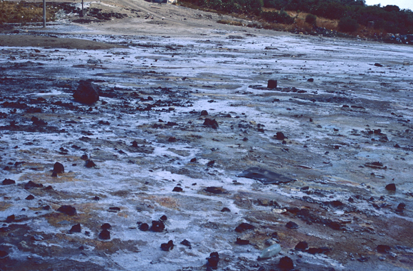 Chaque site couvre plusieurs milliers de mètres carrés. Les mares de boue ont une forte salinité, un PH moyen de 6 et une conductivité de 88ms / cm. Dans la plupart des cas, la température de l’eau se situe aux alentours de 19°C ; ainsi, sur le site de Stadio, les relevés que j’ai effectués vont de 18,1°C à 20,3°C. On note de petits écarts d’une source à l’autre, mais l’ensemble reste stable, que ce soit au printemps ou en été, époques où j’ai effectué les mesures. La composition chimique (sur une base équivalente) est la suivante :