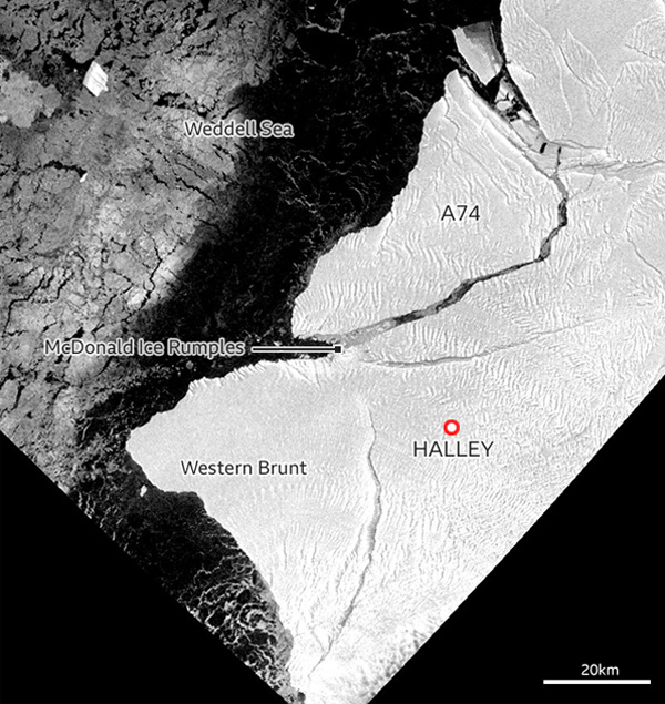 Le vêlage était attendu depuis un moment et n’a surpris personne. Un iceberg de taille semblable, l’A74, s’est détaché de la plate-forme glaciaire en février 2021. Selon le British Antarctic Survey (BAS), l’A74, qui mesurait 1 270 kilomètres carrés, est parti à la dérive dans la mer de Weddell.