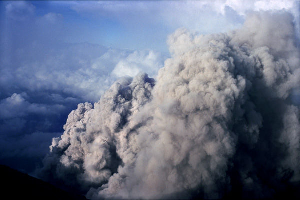 Durant les 23 et 24 avril, d’importants panaches de gaz et de vapeur, presque continus, contenant un peu de cendre, se sont élevés du cratère où une incandescence était visible la nuit.