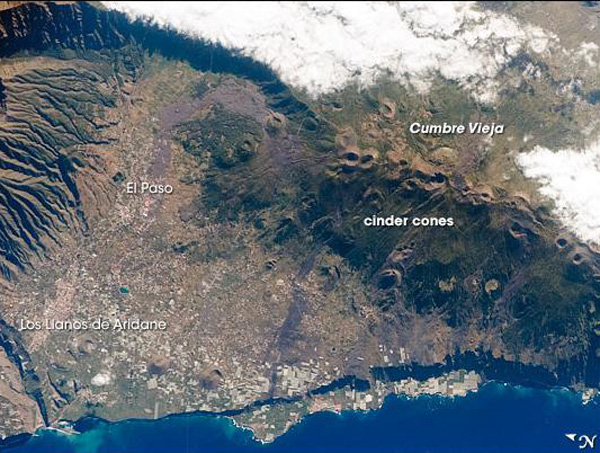 Cumbre Vieja vu depuis l’espace (Source: NASA)