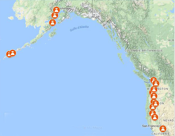 À l’exception de ceux du Mont Shasta, qui semblent relativement stables grâce aux masses d’air humide en provenance du Pacifique, la plupart des glaciers de la Chaîne des Cascades marquent un net recul. Dans une note publiée le 7 mars 2016, j’ai décrit la situation sur le Mont Rainier où le principal danger redouté par les autorités concerne les lahars, autrement dit des coulées de boue qui pourraient être déclenchées par la fonte des glaciers sur les flancs du volcan. Cependant, avec le réchauffement climatique, les glaciers ont reculé au cours des dernières décennies, de sorte que leur volume est moins impressionnant que par le passé. Si une éruption se produisait, les coulées de boue seraient probablement moins destructives, même si elles causeraient de graves dégâts dans les localités sur leur chemin. Des villes comme Orting sur les berges de la Puyallup River seraient certainement touchées. Des itinéraires d’évacuation ont été mis en place pour permettre à la population de se réfugier dans des lieux sûrs.