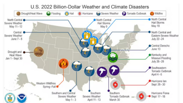 L’année 2022 restera dans les annales aux États-Unis pour ses inondations et ses tempêtes dévastatrices, ainsi que pour ses vagues de chaleur et ses sécheresses extrêmes. 2022 s’est terminée avec une tempête de neige encore jamais vue dans certaines régions du pays.