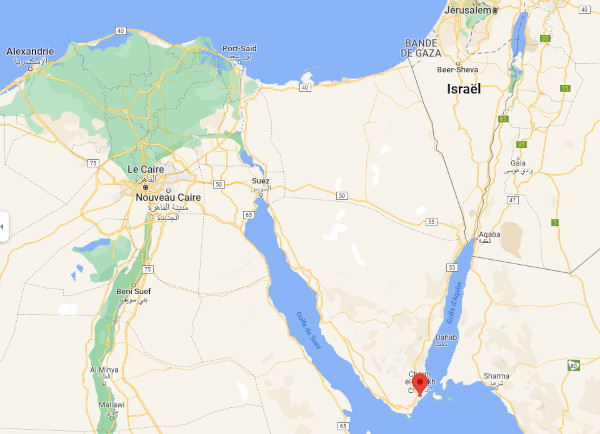 Le point rouge montre Charm el-Cheikh (Égypte) où va se tenir la COP27 (Google Maps)