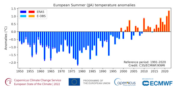The report « State of the Climate in Europe 2022 », published jointly by the World Meteorological Organization (WMO) and the Copernicus agency, highlights alarming trends in global warming in Europe and its consequences for society and ecosystems.