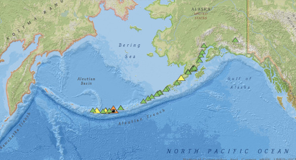 Today, the monitoring of Aleutian volcanoes is carried out by the Alaska Volcano Observatory (AVO). In a note published on October 22nd, 2015, I explained the difficulties encountered by AVO in monitoring these volcanoes located far from everything. There are seismic stations on the ground, but it is often the images provided by satellites – cloud cover permitting – that provide the most valuable monitoring data.