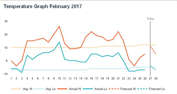 Températures à Denver (Colorado) pour le mois de février 2017.
