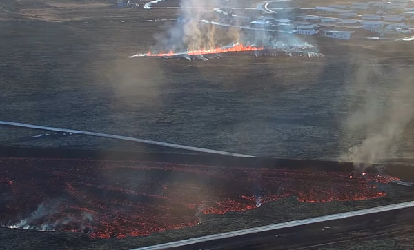 Four days later, on January 14th,, another eruption began, close to Grindavik. In the weeks leading up to the eruption, the government had decided to erect protective walls in an attempt to prevent lava from flowing towards Grindavik and the nearby Svartsengi geothermal power plant. For the first few hours the protective walls proved helpful, though a fissure had managed to break through one of the walls. That meant some lava flowed toward the town, but the walls kept most of it at bay.