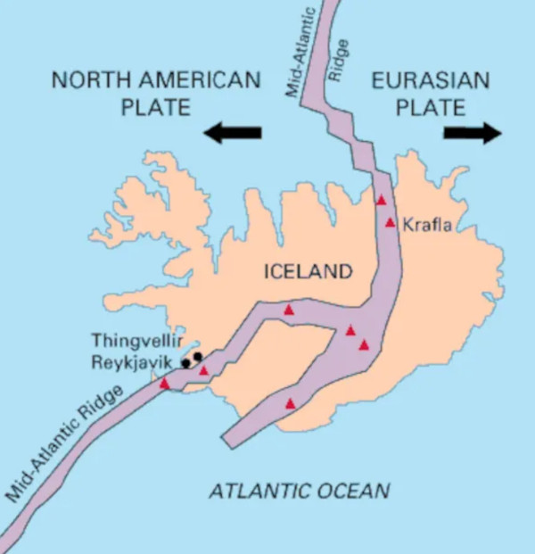 Volcanic eruptions in Iceland are dur to the position of the island above a geological hotspot, where plumes of hot material deep within the Earth rise towards the surface. The country also sits on the boundary between the Eurasian and North America tectonic plates. These plates are very slowly pulling apart from each other, creating a space for magma eo rise to the surface where it gives birth to lava flows. .