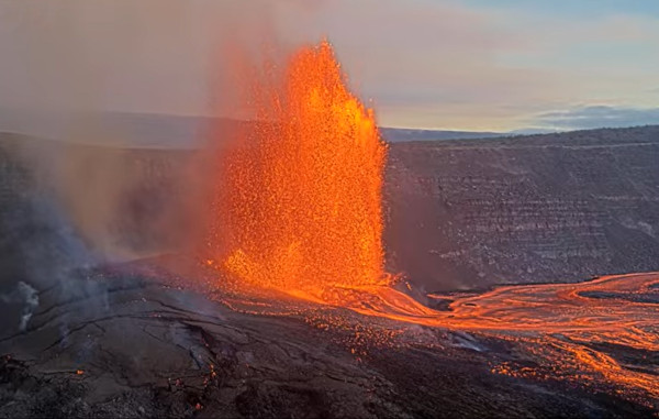 It’s now daylight in Hawaii. Lava has been erupting from the two vents in Halema’uma’u’s crater for about seven hours. The dhow is as mesmerizing as ever.