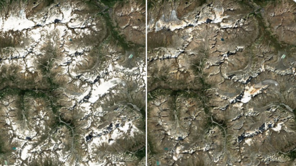 Vue comparative des Alpes du Sud en juillet 2018 et août 2022 (Satellite Sentinel / Copernicus)