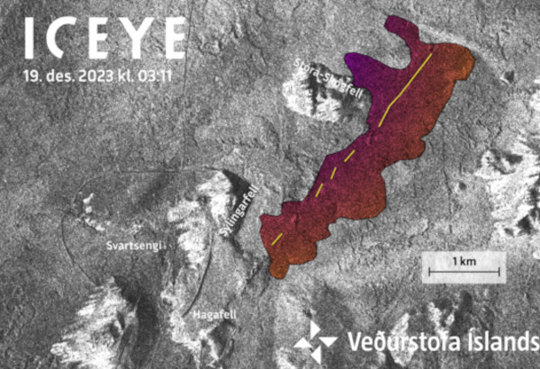The widening in the new subsidence valley amounts to 1.4 metres. Scientists believe that as much magma flowed under Svartsengi into the magma dyke on January 14th as happened in the eruption on December 18th.