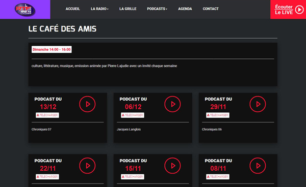 Si voue ne pouvez écouter la diffusion en direct, il suffit de vous rendre sur le site web de RTF et de cliquer sur le lien ci-dessous où vous trouverez les podcasts – autrement dit les enregistrements – des différentes émissions.
