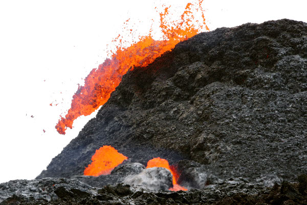Les conditions météorologiques s’étant améliorées (il fait même chaud en ce moment sur l’île de la Réunion),; mon ami Christian Holveck a pu se rendre sur le site de l’éruption. Il m’indique que l’événement continue et s’est même amplifié depuis sa visite précédente. Le 25 décembre, on assistait à de très beaux débordements en sortie de tunnels, ainsi qu’un et un cône bien actif.