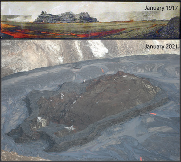 Des îles en train de flotter et de se déplacer à la surface des lacs de lave du Kilauea ne sont pas chose exceptionnelle. Elles ont été observés lors d’éruptions du volcan dans le passé, par exemple au cours de l’activité de l’Halema’uma’u avant 1924.
