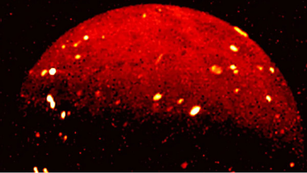 Juno captured a glowing infrared view of Io on July 5th from a distance of 80,000 kilometers. The brightest spots in that image correspond with the hottest temperatures on Io, which is home to hundreds of volcanoes, some of which can send lava fountains tens of kilometers high.