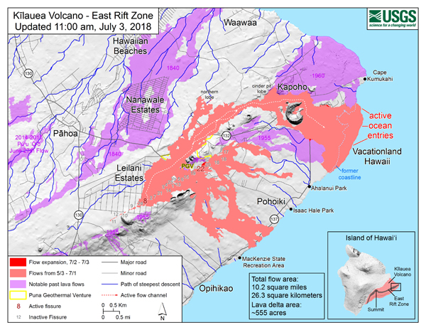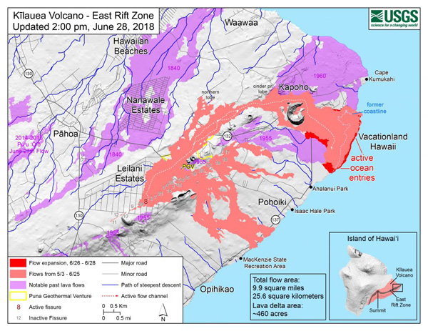 Ces fissures mettent en évidence la nature changeante et les dangers du littoral le long du delta de lave de 2018. Le HVO précise que les instabilités le long du littoral de 2018 ne constituent pas un signe de regain d’activité volcanique dans la région.