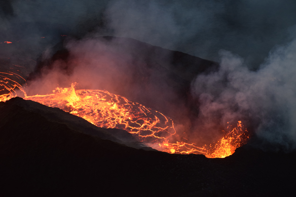 Recently spotted cracks in the delta demonstrate the instability of solid lava along the coastal edge as the hyaloclastite sand debris compacts and erodes away. Collapses of this lava are likely to be much smaller than collapses of active lava deltas. Though these erosional collapses are relatively small, it would be very dangerous to stand on the delta’s coastline if a small section of lava slumps into the ocean.