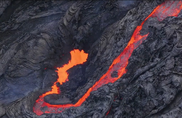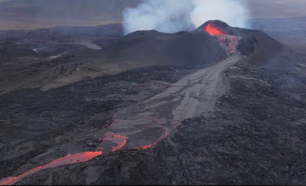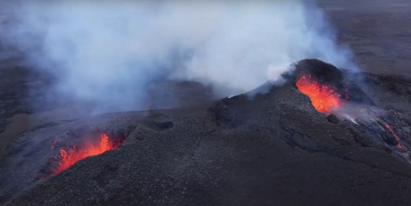 Le positionnement des webcams peut donner l’impression que l’éruption a beaucoup perdu de son intensité, mais les superbes images envoyées par le drone d’Isak Finnbogason le 3 septembre 2024 montrent que l’activité éruptive n’est pas près de s’arrêter.