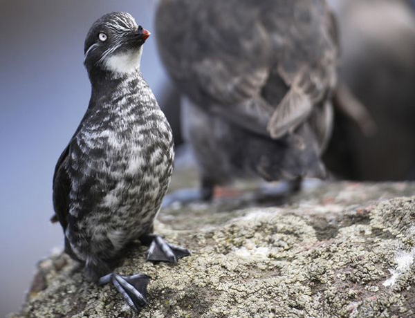 One species of birds that used to live on Kasatochi are auklets, hand-size seabirds that are also extremely numerous on some Aleutian islands. Before the eruption, Kasatochi’s rock crevices were home to about 250,000 crested and least auklets. During the August 2008 eruption, 20 percent of eggs and chicks in the rocks were destroyed. Most of the adults survived. Hot ash blanketed all the cracks where the birds lay eggs. A biologist who returned to the island one year after the eruption estimated nesting success as zero.