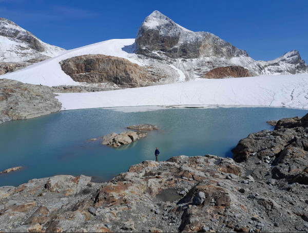 Vue du glacier de Bonne Pierre où la vidange de lacs et cavités a provoqué la catastrophe du mois de juin 2024 (Crédit photo : E. Larose / CNRS)