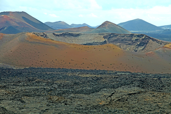 Les visiteurs qui aiment les volcans ne sont pas déçus à Lanzarote car on voyage en permanence au milieu de cônes stromboliens – égueulés pour la plupart – et de coulées de lave dont beaucoup n’ont pas encore été colonisées par les lichens et la végétation. On a vraiment l’impression que la lave – très riche en olivine – a été vomie il y a seulement quelques années.