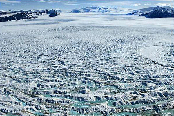 Vue de la Péninsule antarctique et de la Barrière de Larsen (Source : Wikipedia)