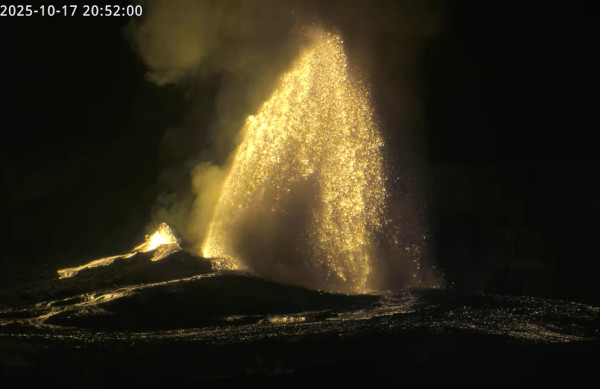 A ‘volnado’ is a column of ash, dust and smoke that picks up during a volcanic eruption and swirls around. During Kilayea’s Episode 37, the lava fountains reached 150-180 meters hifg.