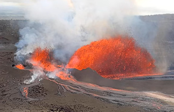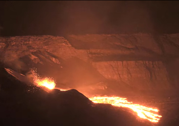 Il fait maintenant jour à Hawaï. Cela fait environ 7 heures que la lave jaillit des deux bouches éruptives dans le cratère de l’Halema’uma’u. Le spectacle est toujours aussi fascinant.