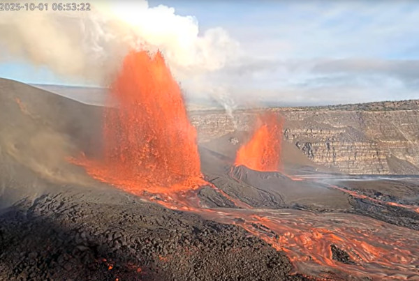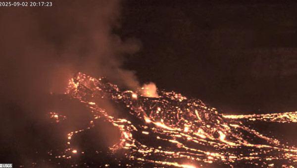 Dans une mise à jour publiée le 30 septembre 2025 à 8h50 (heure locale), le HVO indiquait qu’une incandescence était observée dans les bouches éruptives nord et sud dans le cratère de l’Halema’uma’u au cours des dernières heures, avec plus de 100 débordements de lave depuis la bouche nord depuis le 28 septembre. Le sommet continue de gonfler, et les modèles indiquent que l’Épisode 34 débutera probablement aujourd’hui 30 septembre, avec une faible probabilité de début le 1er octobre. »