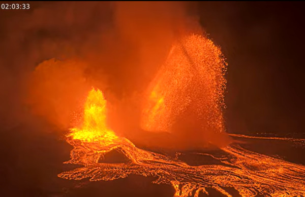 2 septembre 2025 (20 heures, heure locale – 3 septembre, 8 heures, heure française). Le temps de prendre le petit déjeuner et l’Épisode 32 n’est plus qu’un souvenir. Comme lors des épisodes précédents, les fontaines de lave ont disparu brusquement de la bouche nord où elles étaient les plus spectaculaires. Le HVO indique qu’elles ont atteint 150 mètres de hauteur, avec un débit qui a atteint plus de 200 mètres cubes par seconde. L’épisode éruptif a émis quelque 10 millions de mètres cubes de lave . C’est le record depuis que l’on observe ces événements.