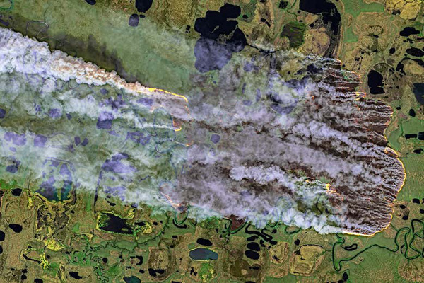 Image satellite montrant le réveil d’un incendie qui avait couvé dans le sous-sol arctique pendant tout l’hiver (Source : Copernicus)