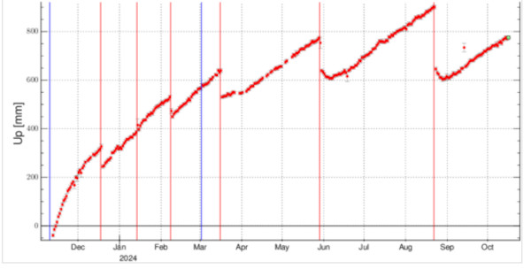 On 6 August 2025, the Alert Level for Laguna del Maule (Chile) was raised to Yellow (level 2 on a four-color scale). The number of seismic events, notably volcano-tectonic earthquakes, had progressively increased in recent weeks and were mainly located in the E and central parts of the complex. Several swarms were detected; in total, more than 11,000 volcano-tectonic earthquakes were recorded in July. Additionally, the rate of surface deformation had accelerated, reaching high levels. Vertical deformation rates were 4.2 cm per month at the station located closest to Laguna del Maule lake during mid-May-July. Variations in horizontal displacement were around 2.1 cm per month. The public is asked to stay at least 2-5 km away from the center of the activity, according to the locations.