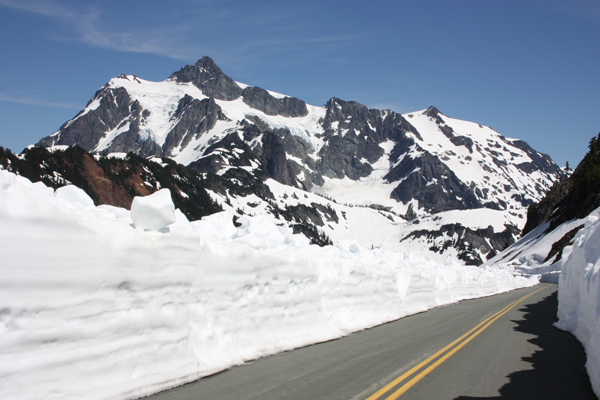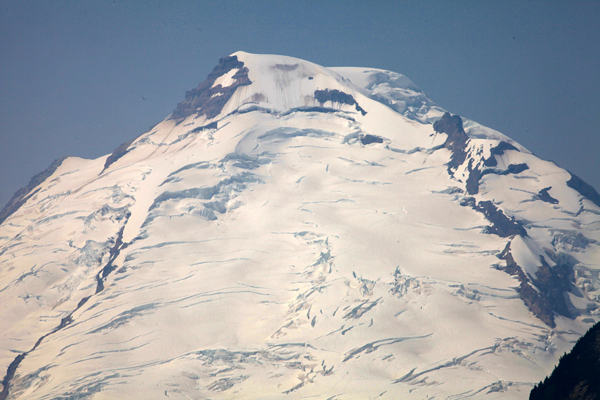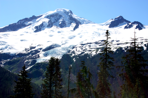 Le Mont Baker (3285 m) dans l’État de Washington est l’un des volcans de la Chaîne des Cascades. Il est toujours actif et pourrait devenir une menace pour les localités environnantes. Malgré la chaleur qui règne sous la montagne, le Mont Baker est le deuxième sommet des États-Unis – après le mont Rainier – au vu du nombre de glaciers sur ses pentes. Ils ont de bonnes zones d’accumulation grâce aux fortes et fréquentes chutes de neige dans la région. Après l’Alaska, le Mont Baker détient le deuxième plus grand système glaciaire des États-Unis sur un seul sommet. Après une augmentation de leur taille entre 1950 et 1975, les glaciers reculent actuellement sous les coups de boutoir du réchauffement climatique.
