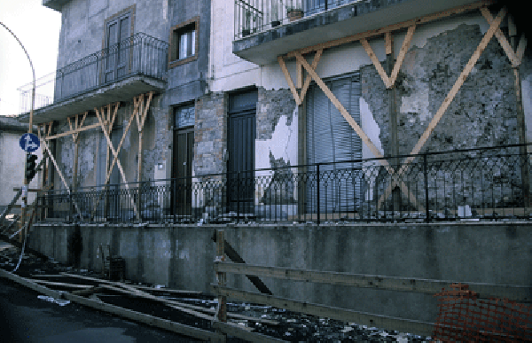 Dégâts provoqués par un séisme sur l’Etna, dans le secteur de Santa Venerina.