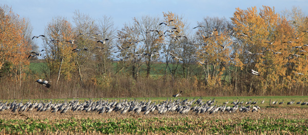 Les dizaines de milliers de visiteurs du Festival viennent de partout en France, mais aussi de l’étranger, pour voir les photos, mais beaucoup de gens sont aussi attirés par le spectacle des grues autour du lac du Der où elles font une halte pendant leurs migrations. D’habitude, j’en vois des milliers ; certaines années, des champs sont remplis d’oiseaux en train de faire provision de protéines avant leur long voyage vers le sud.