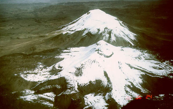 Closer to us, Sabancaya erupted on May 28th, 1990. Over the days, increasingly violent Vulcanian explosions generated plumes of ash reaching 7 or 8 kilometers in height, with ashfall as far as 20 kilometers away. It prompted many villagers to flee the slopes of the volcano.