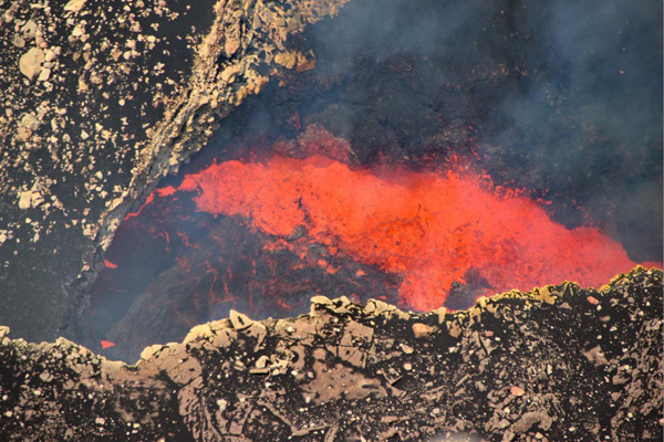 The eruption at Nyamulagira (Democratic Republic of Congo) continued in December based on observations using satellite images. Incandescence on the floor of the summit caldera and from active lava flows on the NW flanks was visible in a 7 December satellite image. The distal end of the farthest lava flow was about 6.5 km from the crater rim.