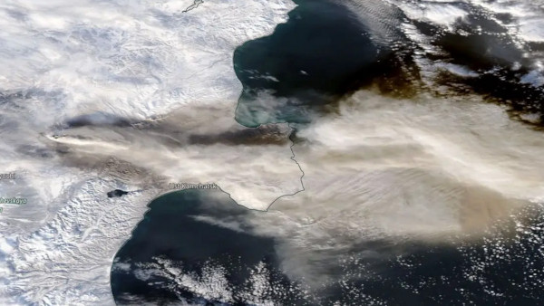 Image satellite du panache de cendre du Planchón-Peteroa le 8 novembre 2025. (Source : Copernicus EU/Sentinel-2, The Watchers)