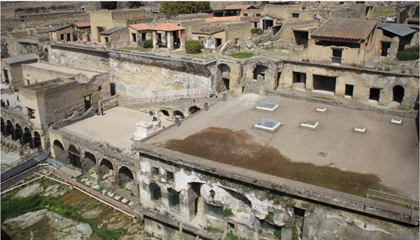 Même si Pompéi offre des merveilles au visiteur, à titre personnel et en tant que volcanophile, je préfère Herculanum qui montre parfaitement l’épaisseur de matériaux émis par le Vésuve. Le moment le plus émouvant de la visite est la vue sur les hangars à bateaux dans lesquels s’était réfugiés les habitants. Les moulages en résine des squelettes offrent aux visiteurs une image impressionnante de la catastrophe. Aujourd’hui, ces hangars se trouvent à 400 mètres du littoral !