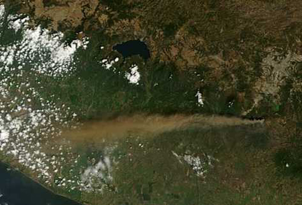 L’éruption vue depuis l’espace (Crédit photo: NASA)