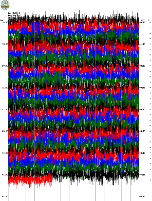 3 mars (8 heures): Au vu du tracé sismique et des informations en provenance du Guatemala, la crise éruptive semble en déclin et la coulée de lave a arrêté sa progression. Elle n’aura pas parcouru plus de 2 km.