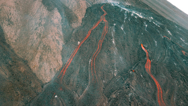 Two eruptive vents opened at an altitude of about 2.5 – 2.7 km near the Erman glacier, with lava flows emerging from the craters. The melting of the glacier led to the formation of a lahar along the Krutenkaya River, about 7 km east of the Klyuchi village on February 23rd .