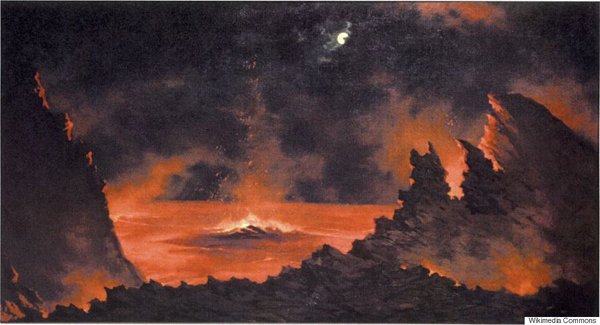 Un bon exemple est le Tambora (Indonésie) qui est entré en éruption en 1815, tuant quelque 10 000 personnes directement et plus de 60 000 en raison de la famine et de la maladie apparues au cours de l’«hiver volcanique » qui a suivi. En Europe, les peintres ont pu voir les changements de couleurs dans le ciel. La cendre volcanique et les gaz crachés dans l’atmosphère ont fait le tour du monde et, comme ces particules d’aérosols ont dispersé la lumière du soleil, elles ont donné naissance à des couchers de soleil de couleur rouge vif et orange en Europe pendant au moins trois ans après l’éruption. JMW Turner fut l’un de ces artistes qui ont peint les superbes couchers de soleil pendant cette période. Aujourd’hui, les scientifiques utilisent les œuvres du peintre anglais et celles d’autres grands maîtres pour récupérer des informations sur la composition de l’atmosphère au cours des années passées.
