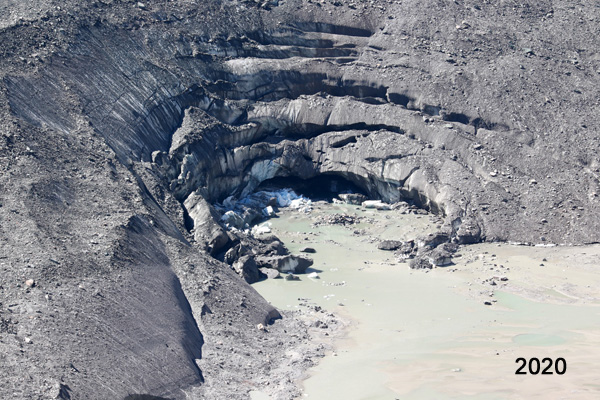 Je suis d’un grand pessimisme quand je constate la situation glaciaire dans les Alpes, tout comme je le suis devant les glaciers d’Alaska. Je fais partie de ceux qui ont connu ces glaciers à une époque où leur masse majestueuse emplissait les vallées ou débordait des flancs de la montagne. Aujourd’hui, c’est fini. Le drame, c’est qu’une grande partie de la population n’a pas conscience de la catastrophe qui nous attend. La haute montagne avec sa neige et ses glaciers est le pivot d’une économie, avec le tourisme et surtout l’alimentation en eau. En observant le jeune Rhône du haut de la falaise du Belvédère au mois de septembre 2020, je me disais que dans un avenir plus proche qu’il y paraît, l’eau ne coulera plus dans la vallée. Suite à l’absence de neige ou de glace, des affluents du Rhône vont se tarir eux aussi, avec des conséquences faciles à imaginer….