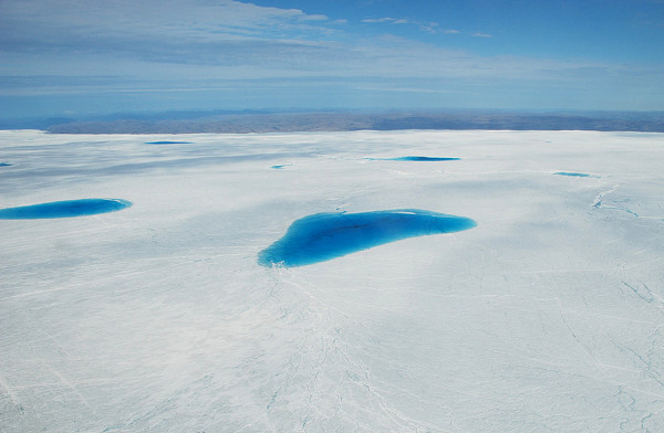 Another phenomenon has been observed at Perito Moreno. Small meltwater lakes have appeared on the glacier’s surface. With time, this water percolates into the glacier and reaches the beadrock where it acts as a libricant, accelerating the speed of the glacier which loses thickness in the meantime.