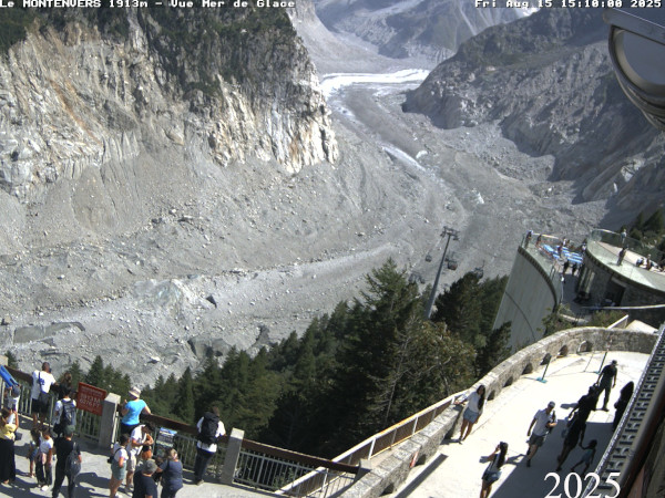 La Mer de Glace, sur le versant français du Mont-Blanc, a vu son épaisseur diminuer de plus de 120 mètres depuis 1900, obligeant même le téléphérique qui y accède à ajouter de nouvelles marches pour suivre l’affaissement rapide de la glace.